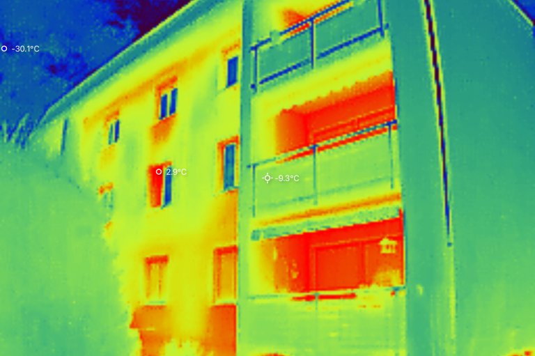 Die Thermografie mittels Infrarotkamera ist ein unverzichtbares Werkzeug, um Schwachstellen an der Gebäudehülle, innen wie außen, zu erkennen. Dieses berührungslose Messverfahren hilft vor Ort, Wärmebrücken sowie Dämm- und Dichtungsprobleme zu identifizieren.